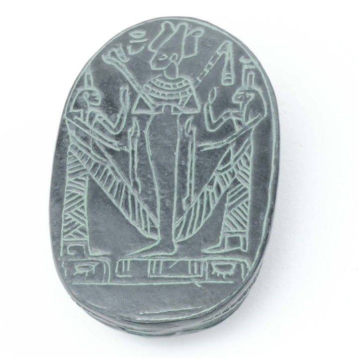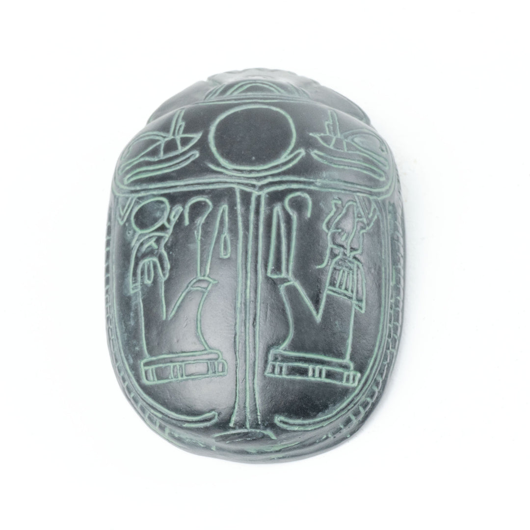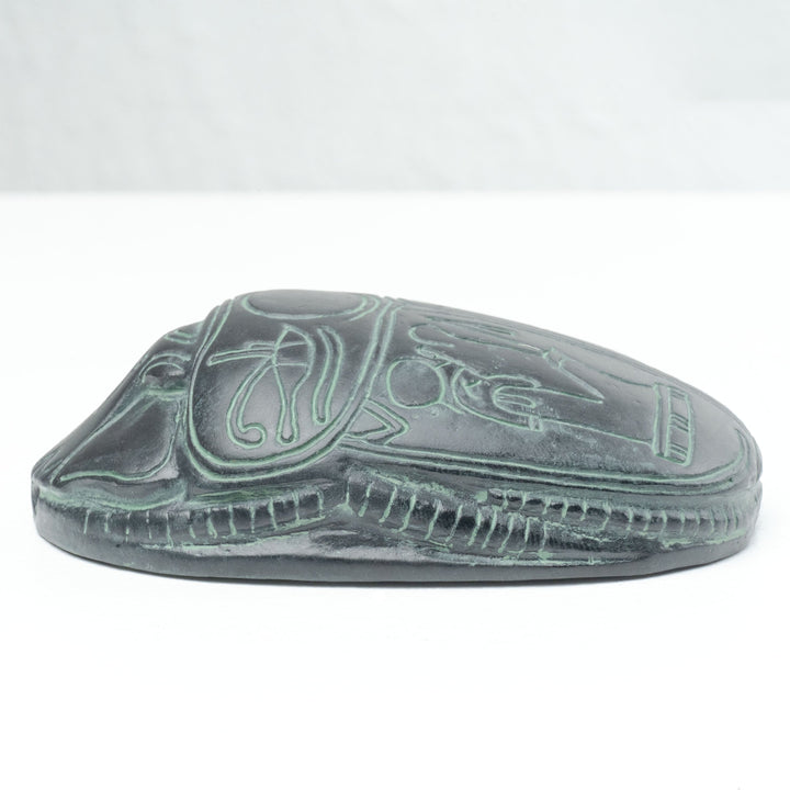 Inspiriert von der heiligen Symbolik des alten Ägyptens verkörpert diese detailgetreue Skarabäus-Replik Schutz, Wiedergeburt und göttliche Energie. Aufwändig geschnitzt und in einem Grünspan-Ton gehalten, verleiht er jedem Raum eine mystische Präsenz - ein perfektes Stück für Sammler oder spirituelle Dekoration.