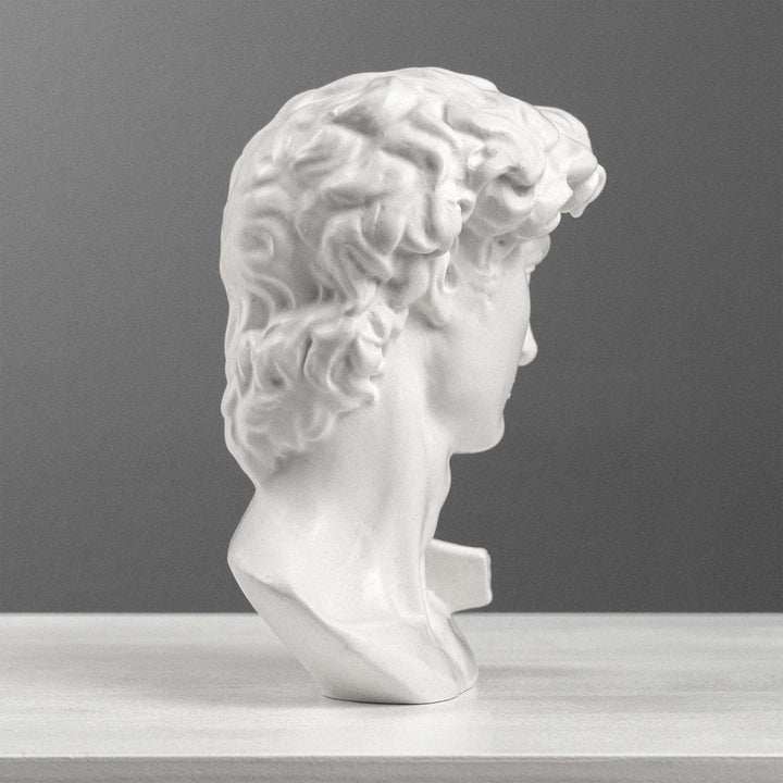 • Unsere David-Büste ist eine Reduktion des Kopfes der berühmten Michelangelo-Statue – ein Meisterwerk der Renaissance-Bildhauerei, geschaffen zwischen 1501 und 1504. Das Original zeigt einen eindrucksvollen stehenden männlichen Akt mit 5,17 Metern Höhe. Die Statue stellt den biblischen Helden David dar, ein beliebtes Motiv der Florentiner Renaissancekunst. Unsere Büste ist ein ikonisches Symbol italienischer Kunst für Ihre Inneneinrichtung.