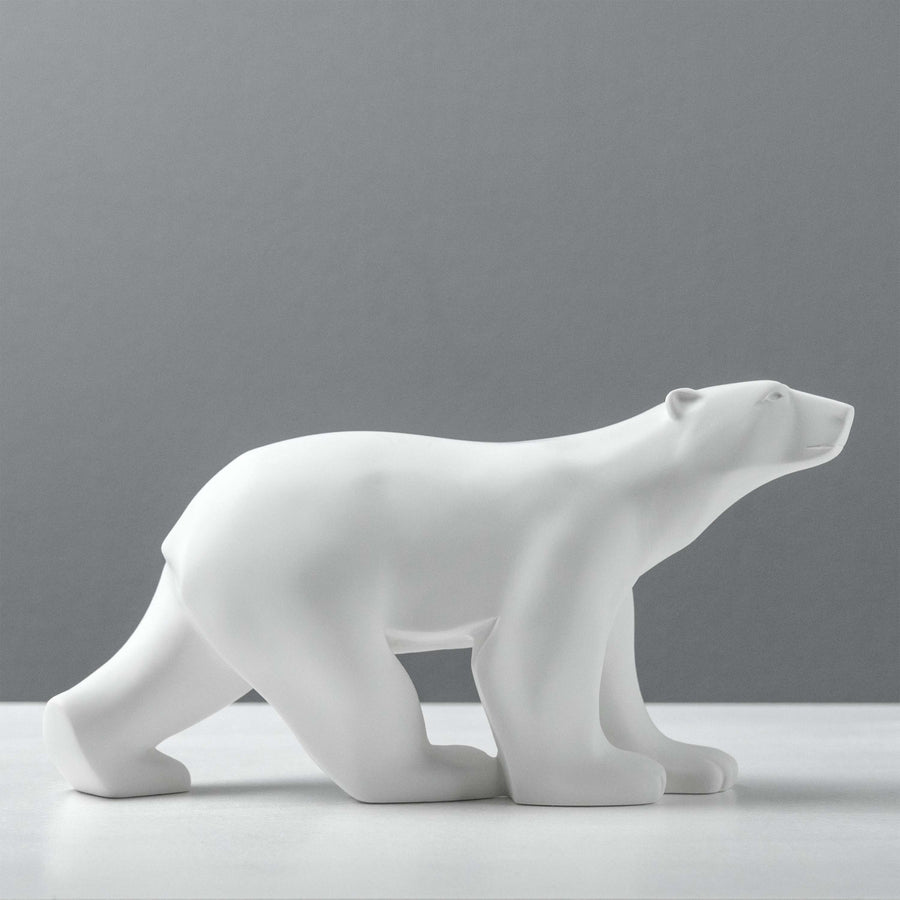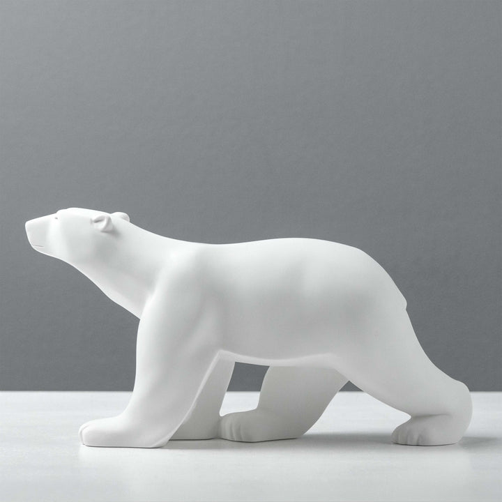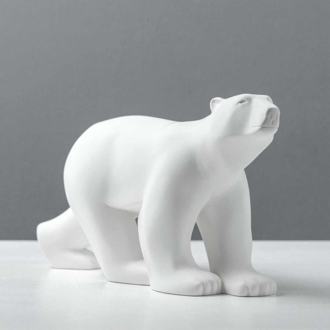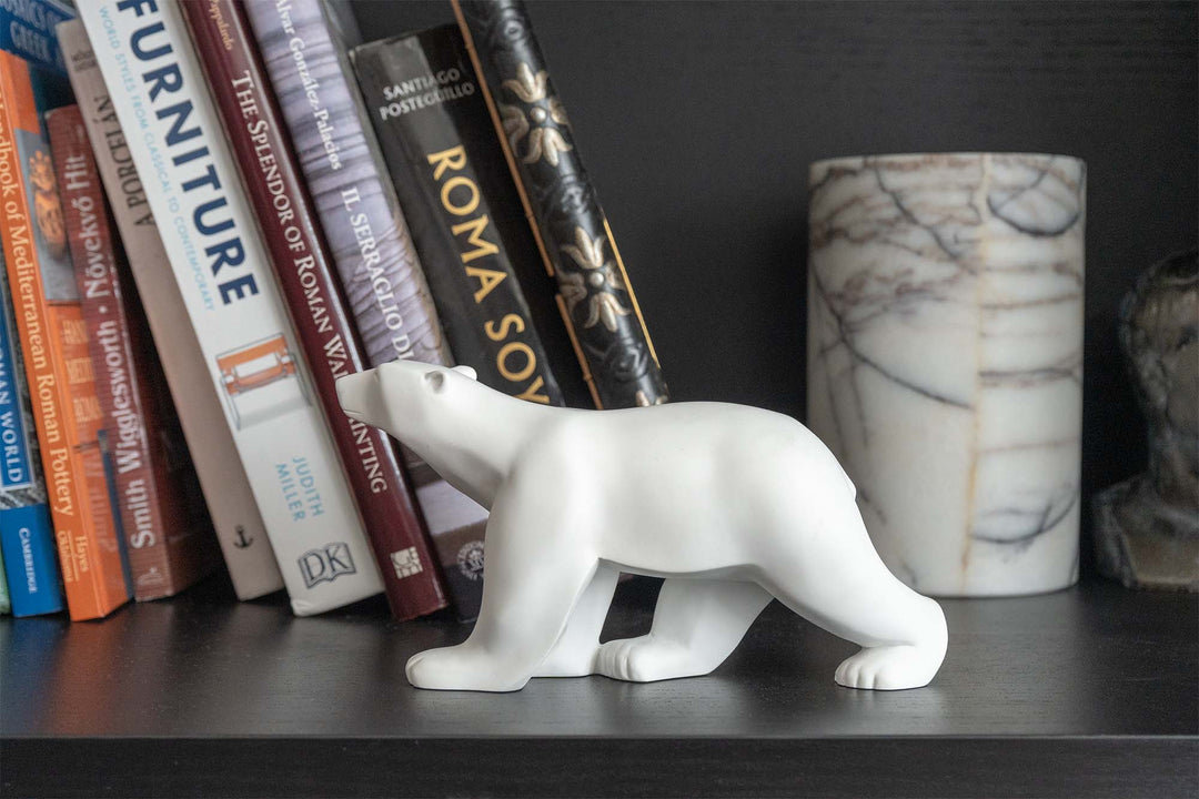 Diese elegante Eisbärenskulptur, die an die heitere Kraft von François Pompons berühmtem L'Ours Blanc erinnert, fängt die Essenz der Bewegung durch vereinfachte, fließende Formen ein. Als Meisterwerk moderner Tierkunst verkörpert sie ruhige Stärke und minimalistische Schönheit - perfekt für Sammler von zeitlosem Design und Art-Déco-Skulpturen.