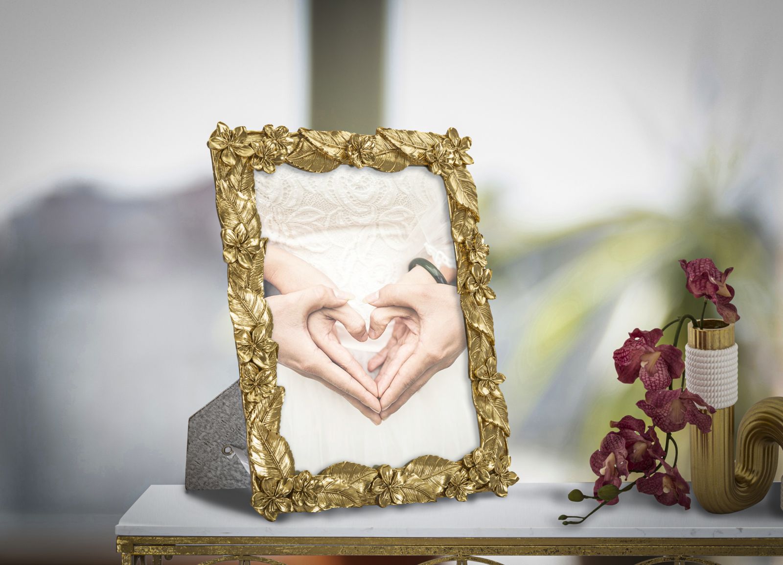 Goldener Blumen- und Blattmuster-Bilderrahmen
