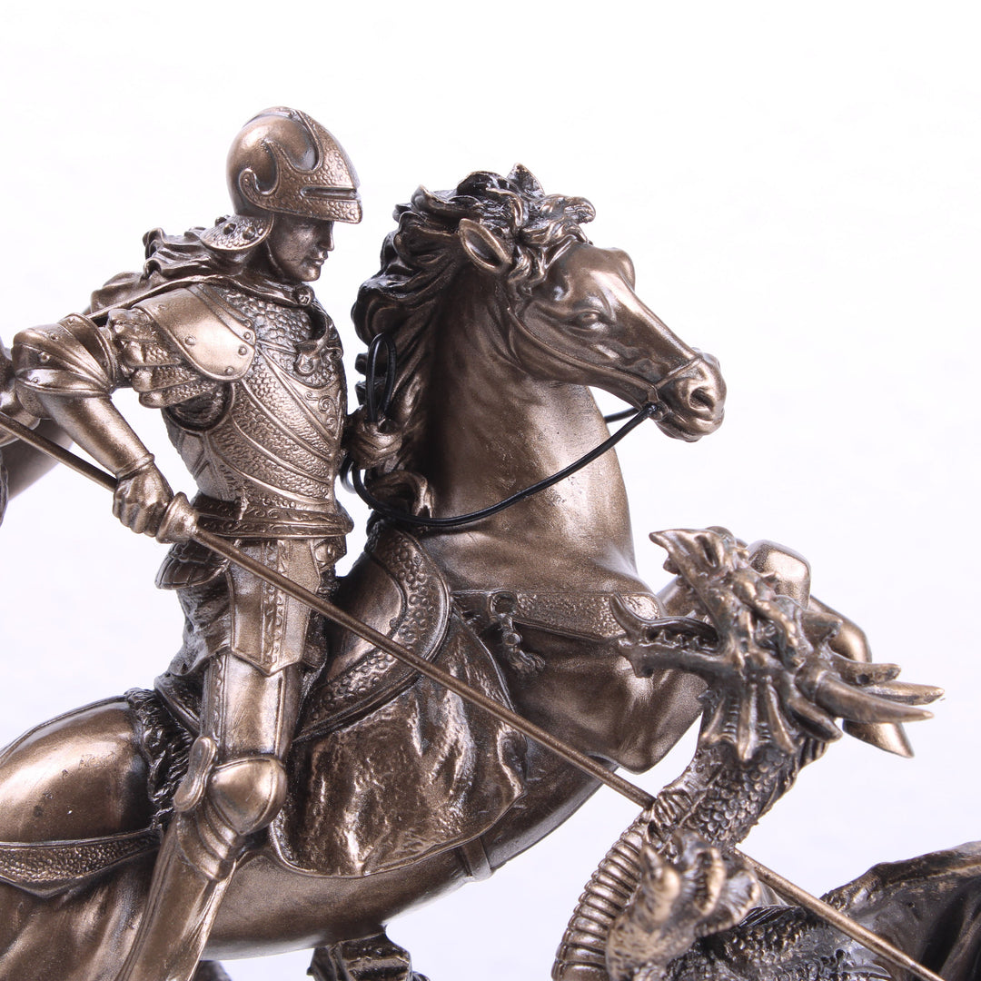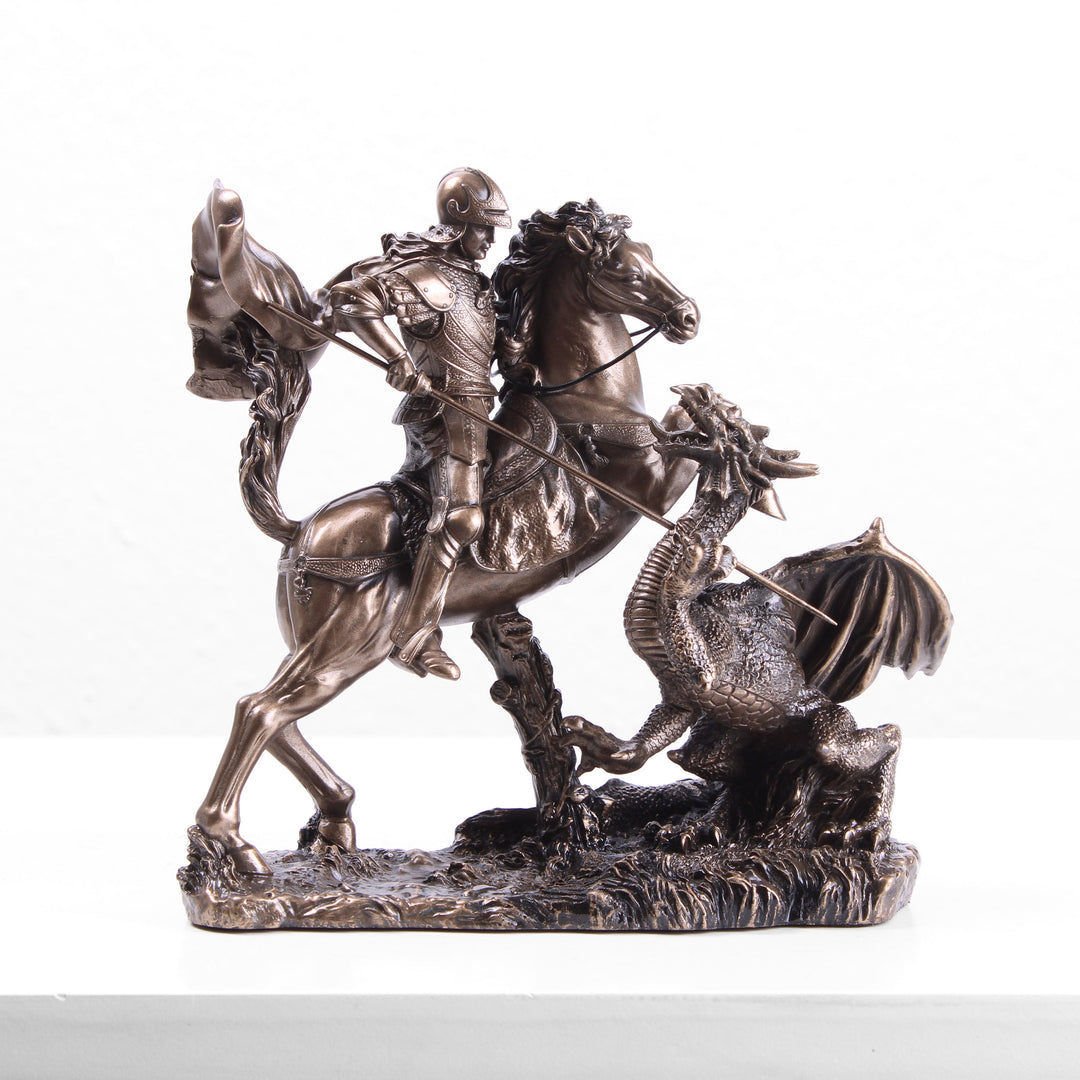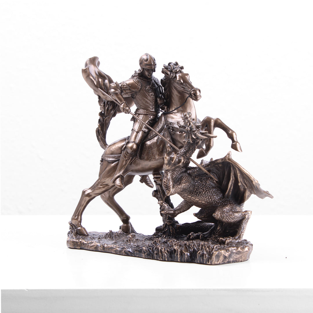 Heiliger Georg besiegt den Drachen (Kleine Kaltguss-Bronze Skulptur)