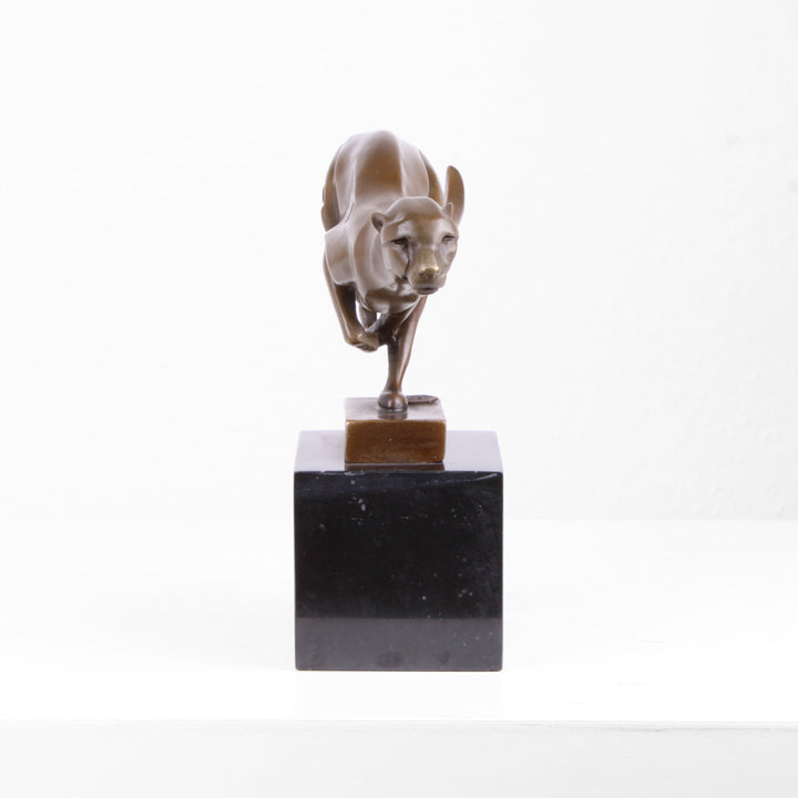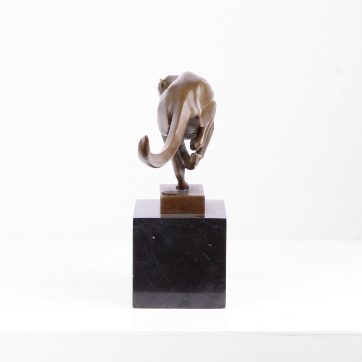 Diese Statue ist aus heiß geschmolzener Bronze mit einer dunkelbraunen Patina hergestellt. Bitte beachten Sie, dass es leichte Farbabweichungen zwischen dem Artikel, den Sie erhalten, und den Bildern auf der Website geben kann, da das Produkt handgefertigt ist, vor allem, wenn man bedenkt, dass der Artikel auf einen natürlichen Marmorsockel montiert ist.