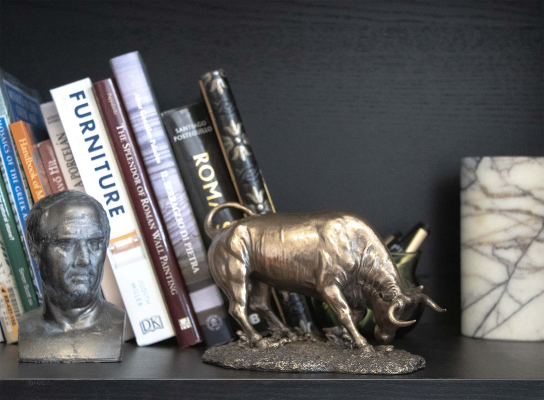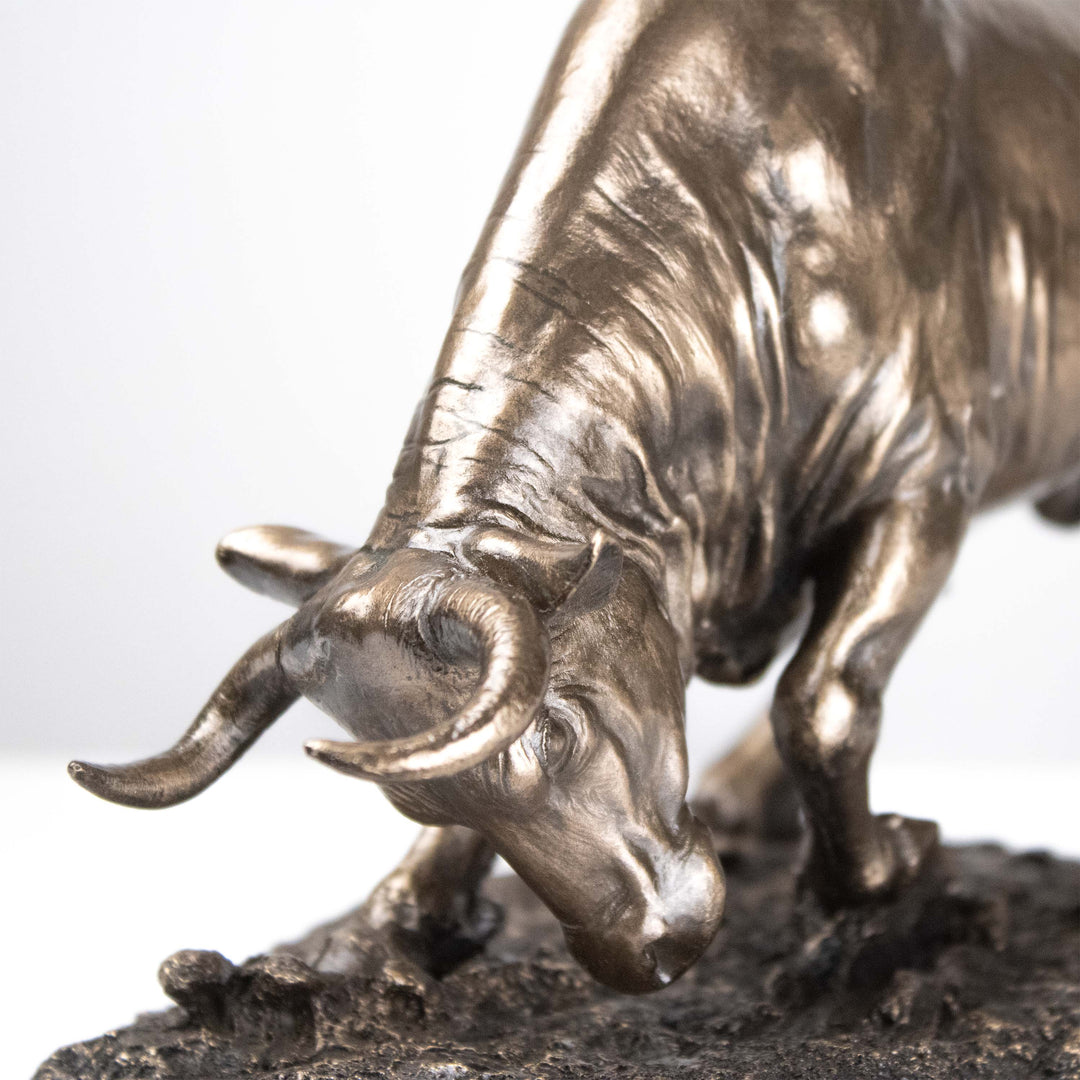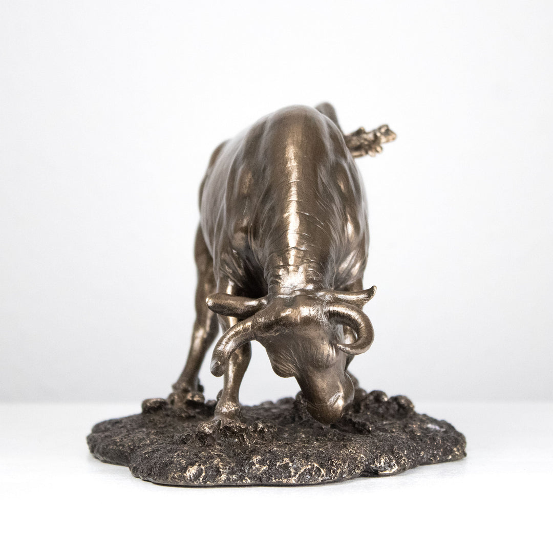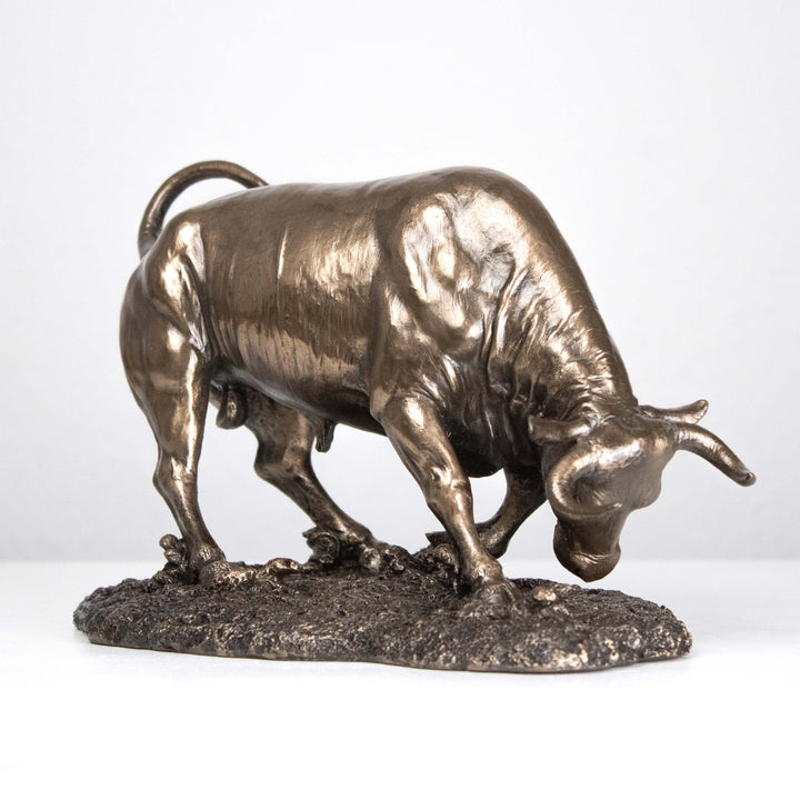 Diese kaltgegossene Bronzeskulptur zeigt einen mächtigen Stier in einer ausgeglichenen Haltung, kurz vor dem Angriff. Mit seiner festen Haltung und konzentrierten Energie symbolisiert er Stärke, Entschlossenheit und Spannung. Ein auffälliges Dekorationsstück, ideal für Büros oder maskuline Innenräume.