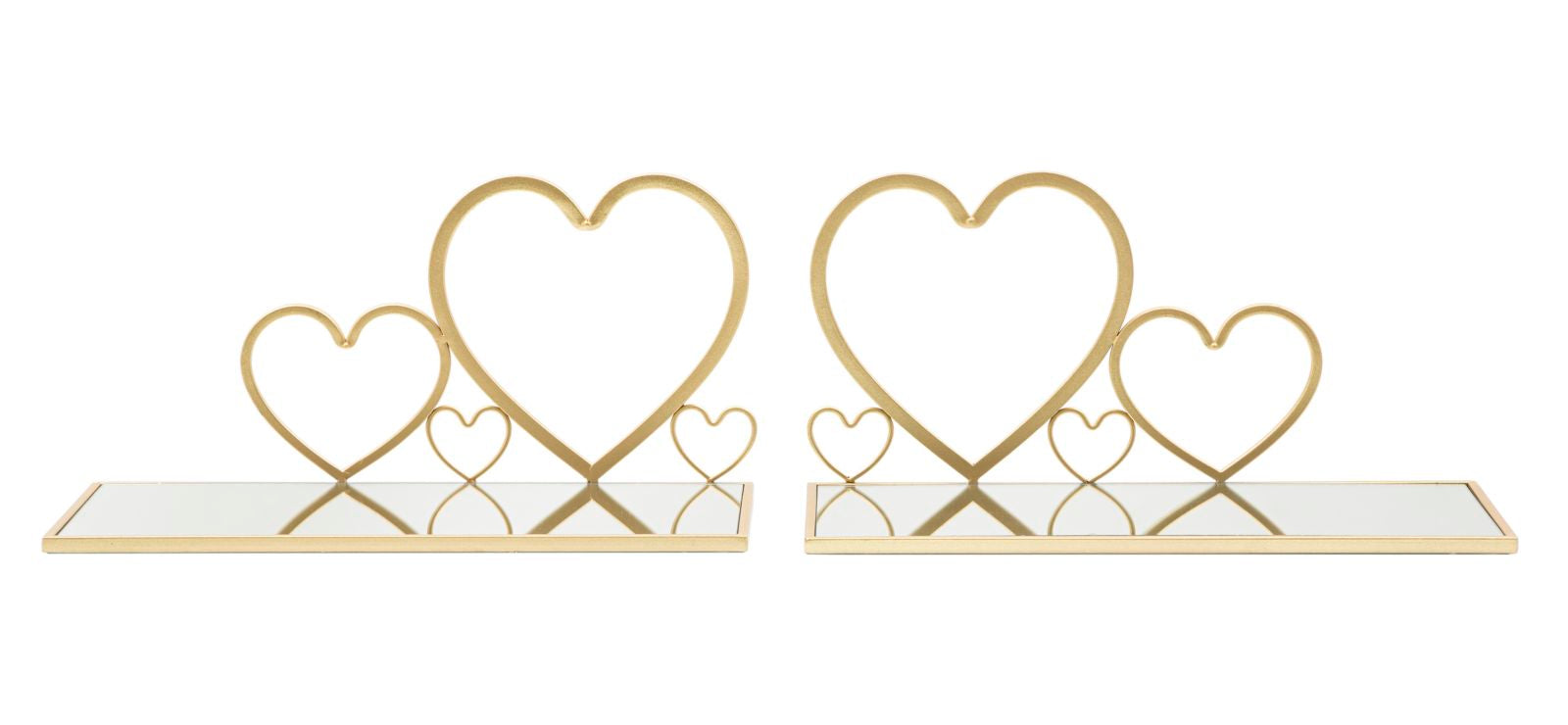 Herzförmiges Wandregal aus Goldmetall und Glas