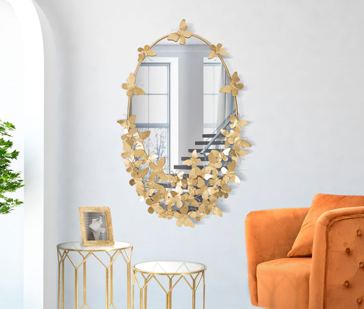 Ovaler Wandspiegel aus Metall mit Schmetterling
