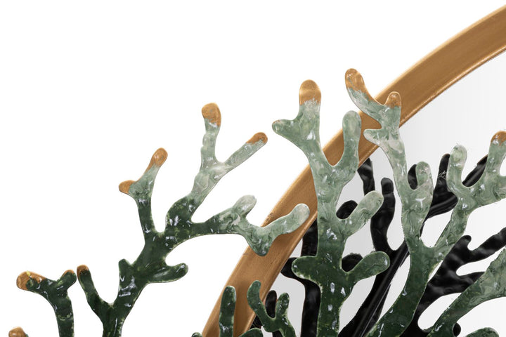 Runder Wandspiegel aus Metall mit Korallenmeer-Dekor