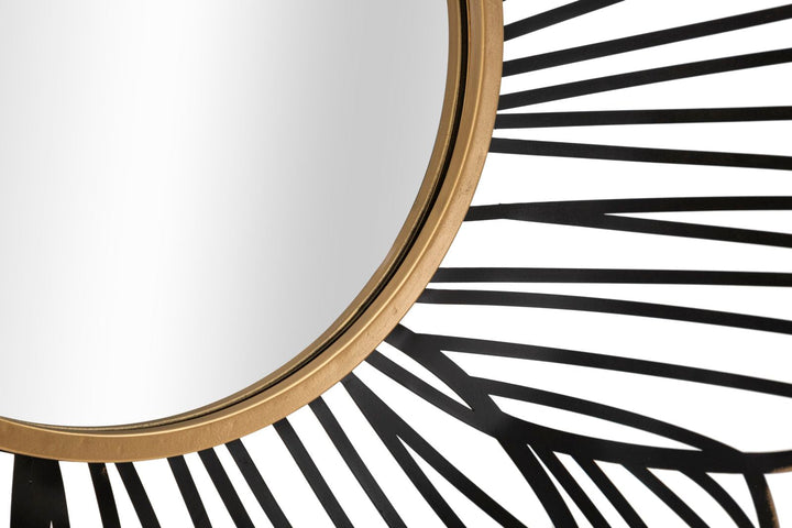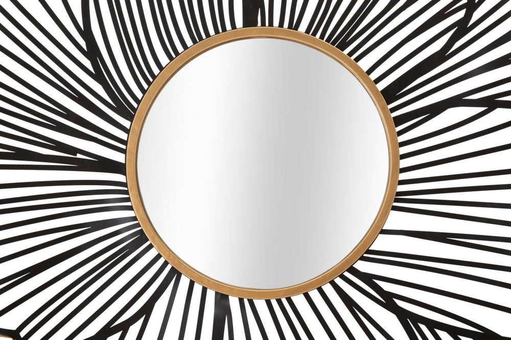 Schwarzer runder Metallspiegel mit Blumenmuster