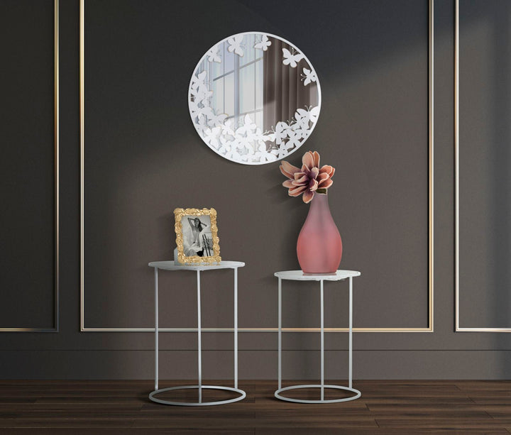 Weißer Metall Schmetterling Runder Wandspiegel