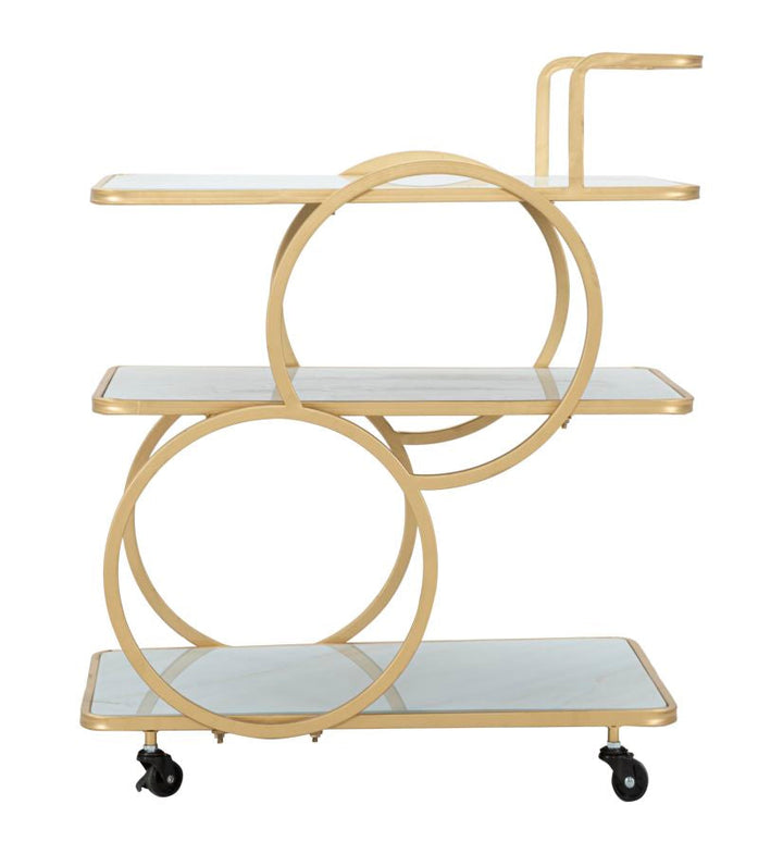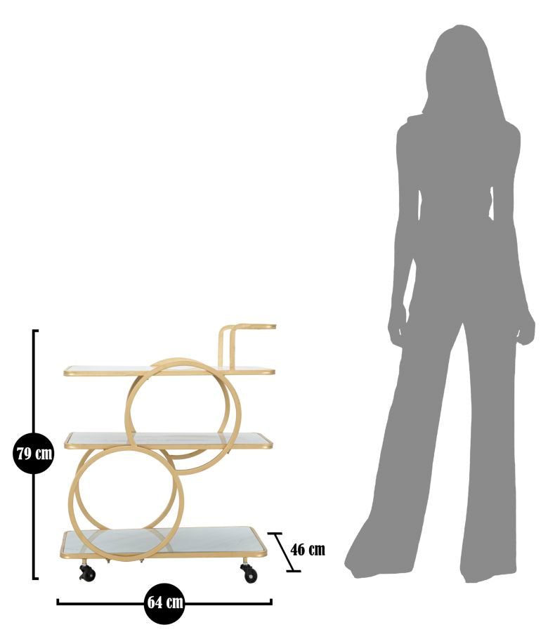 Goldfarbener Trolley aus Metall und Glas mit 3 Regalen