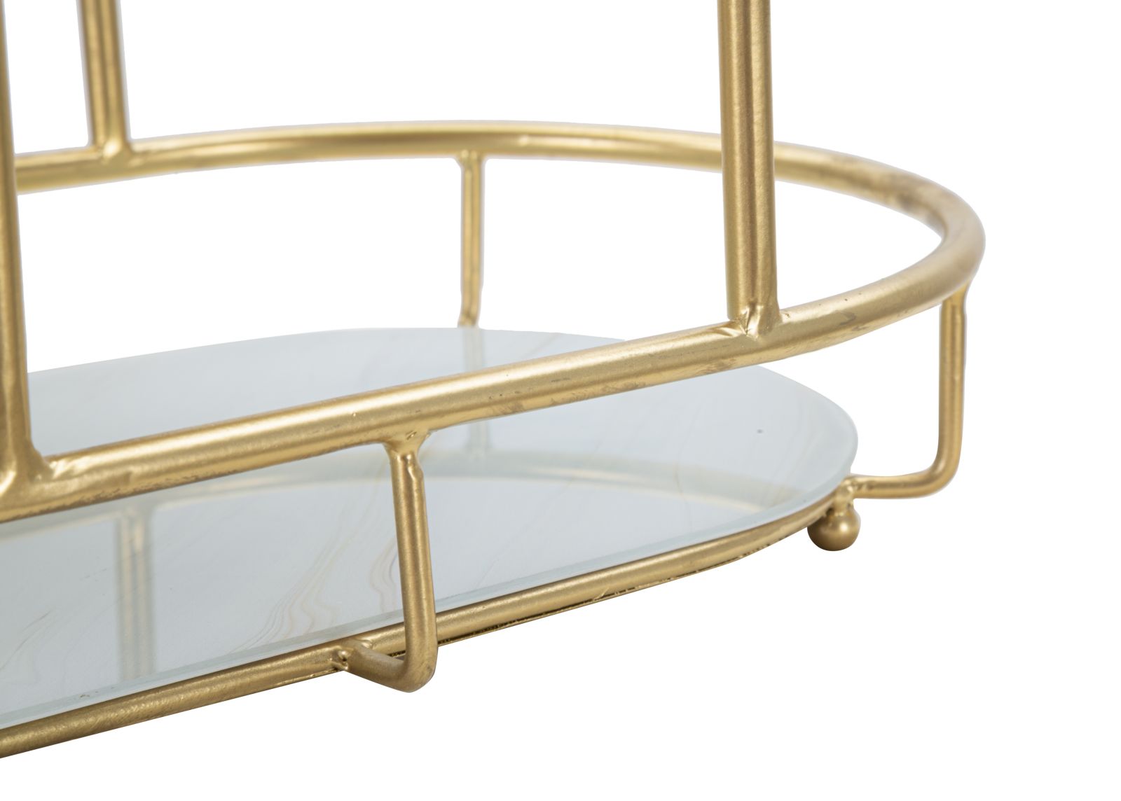 Goldfarbenes Tablett aus Metall und Glas mit 3 Einlegeböden