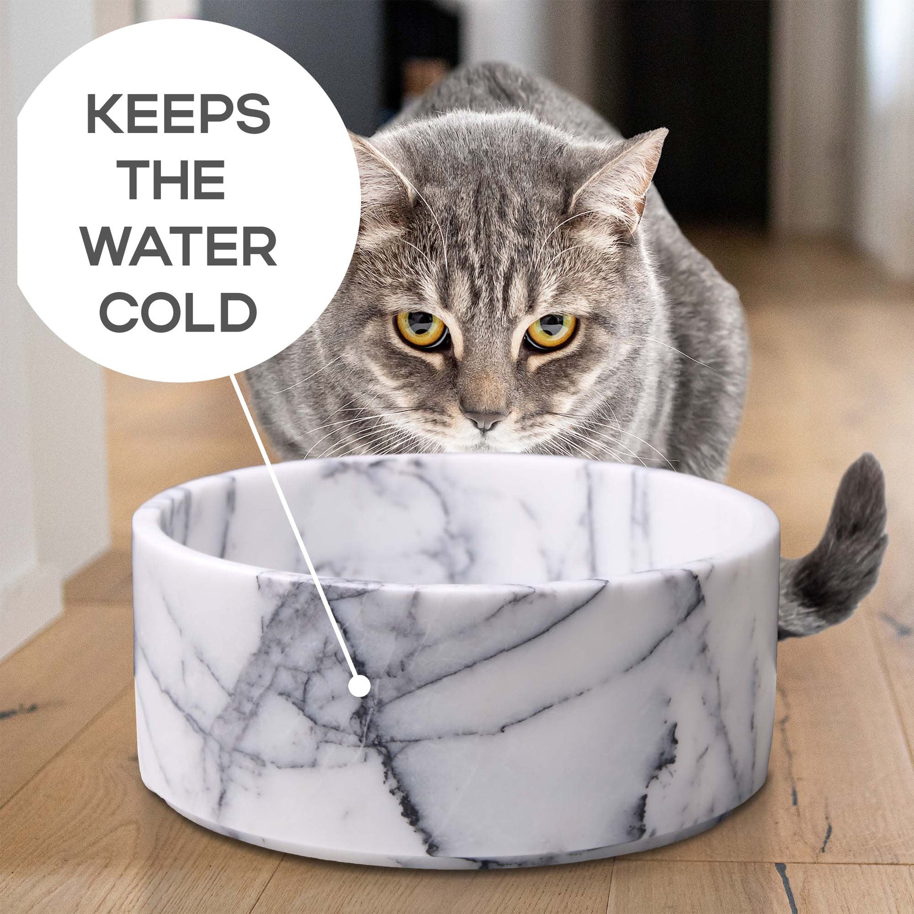 4. Funktionales Design: Das Gewicht des Marmors verhindert Verrutschen oder Verschütten. Die flache, breite Form erleichtert den Zugang zu Futter und Wasser und schont gleichzeitig Hals und Gelenke Ihres Tieres.