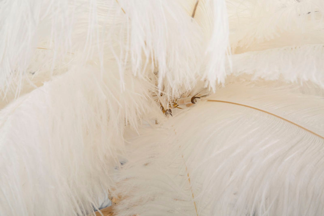Tischleuchte mit Federn in Gold und Weiß