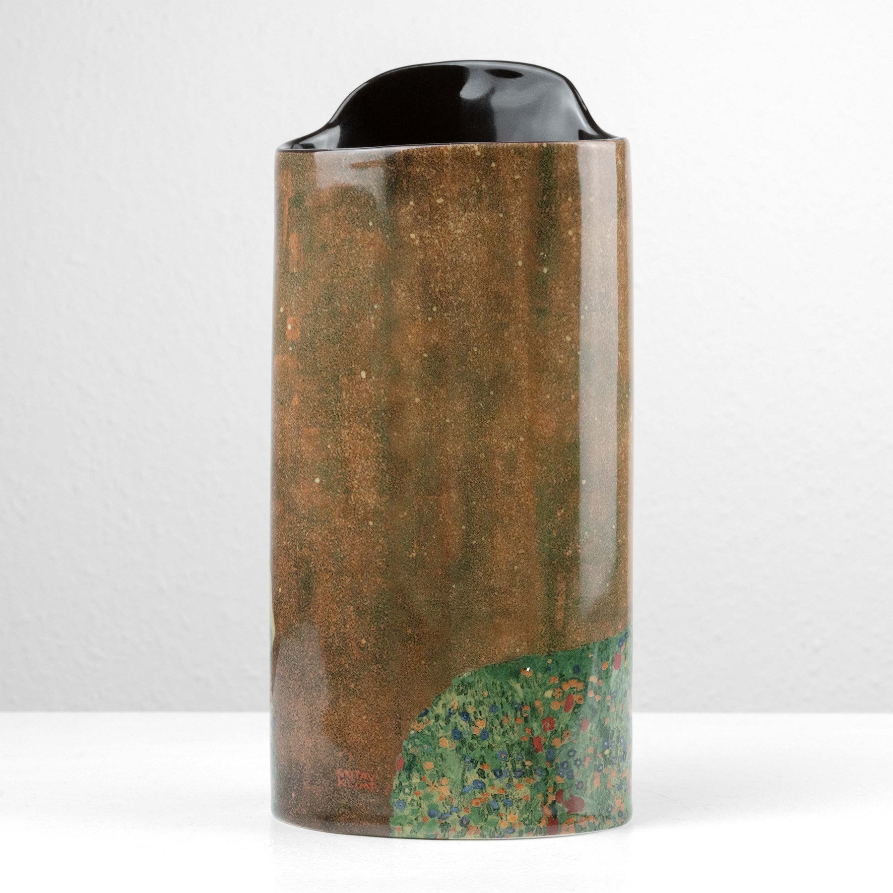 Feiern Sie zeitlose Romantik mit dieser dekorativen Vase mit Gustav Klimts Meisterwerk „Der Kuss“. Mit ihren goldenen Farbtönen und den filigranen Jugendstil-Mustern bringt dieses elegante Stück die Leidenschaft und ornamentale Schönheit des Wien des frühen 20. Jahrhunderts in Ihr Zuhause. Ein luxuriöser Akzent für Kunstliebhaber und ein perfektes Geschenk für besondere Anlässe.