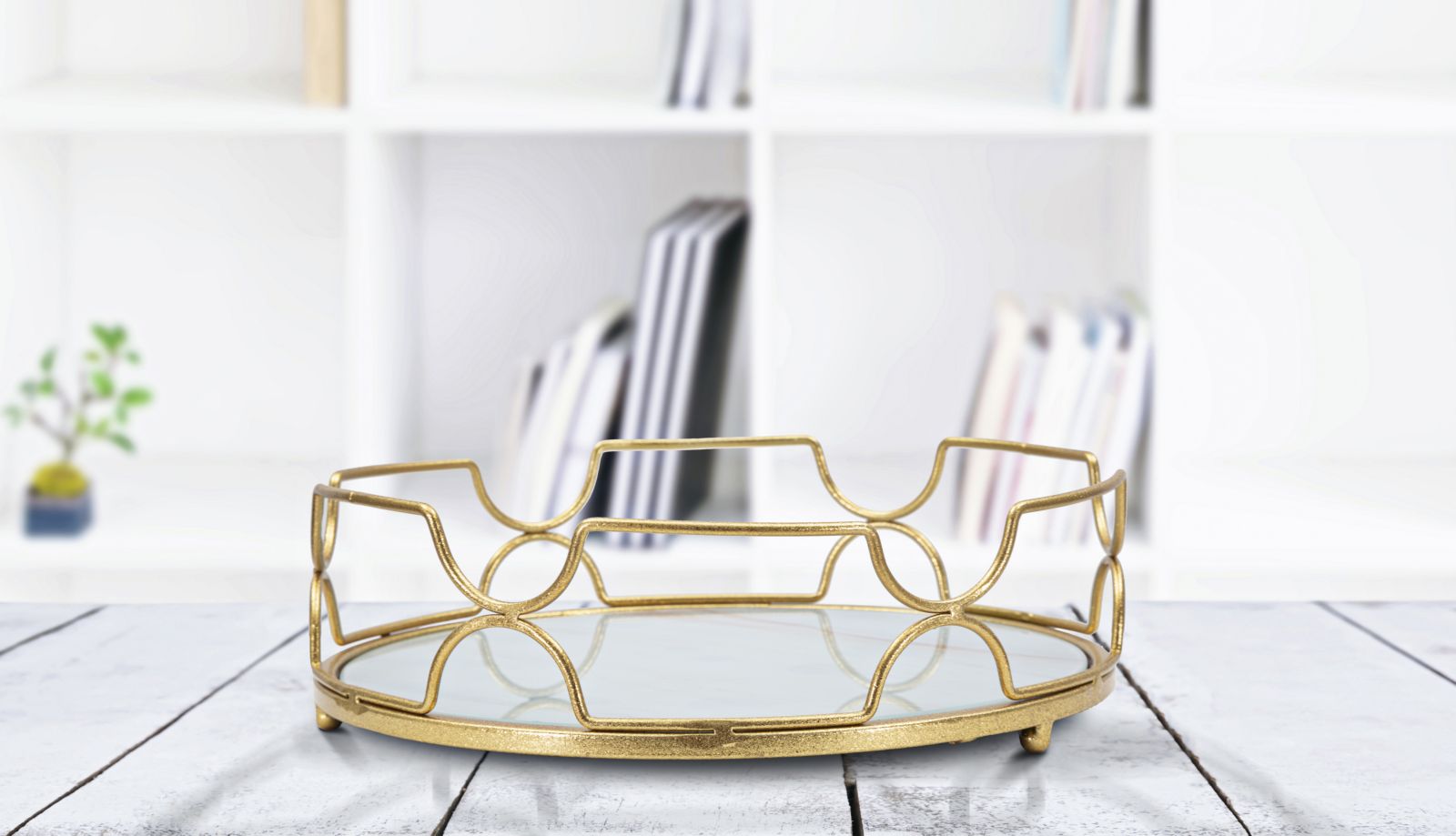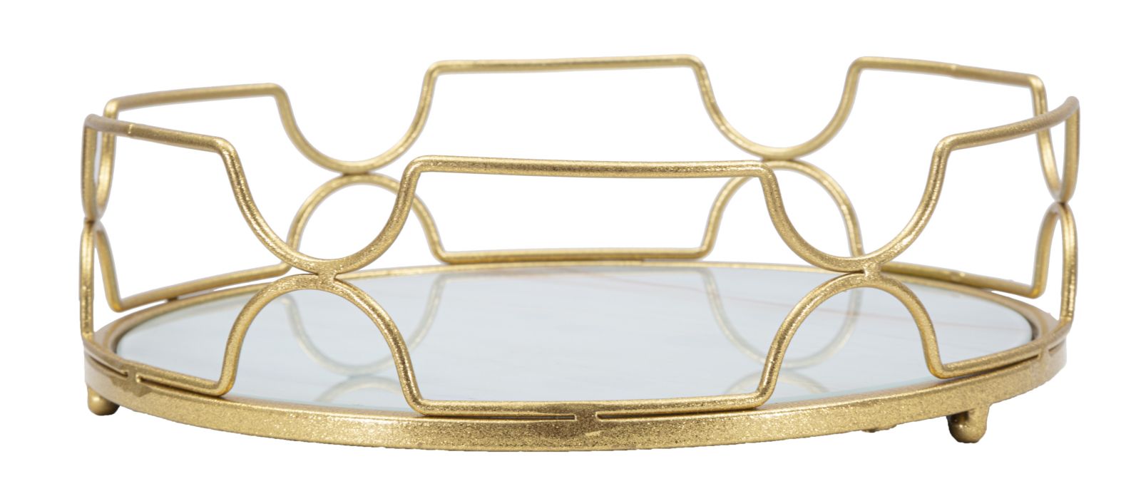 Diese goldene Metallschale ist ein elegantes und stilvolles Accessoire mit einem Glasboden. Die Kombination aus goldenem Metall und Glas schafft einen atemberaubenden Kontrast und sorgt für einen modernen und luxuriösen Look.