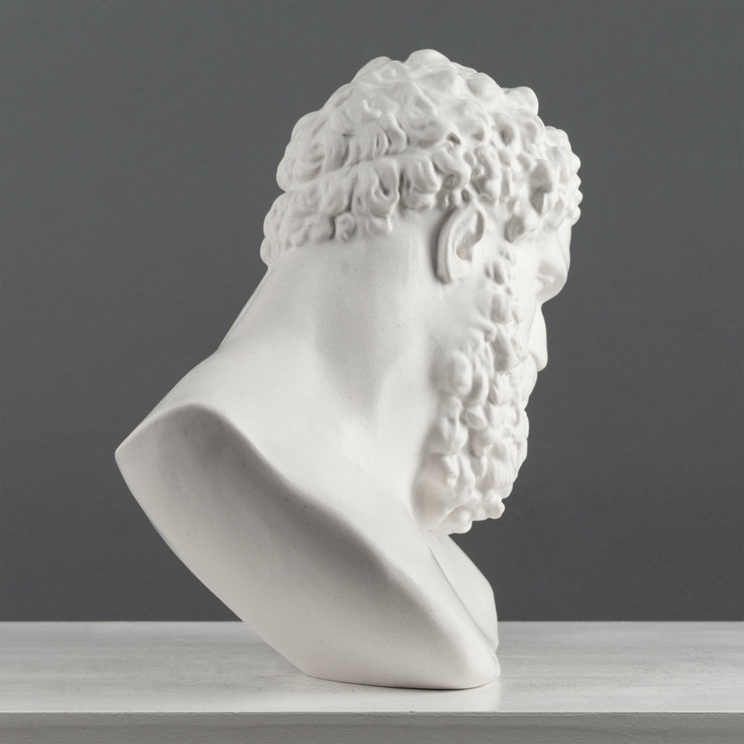Ein Held, geschmiedet aus Mythos und Erinnerung – dieser Herkules-Buste erfasst den Moment nach dem Triumph, wenn Stärke stiller Reflexion weicht. Sein Kopf neigt sich, der Blick wird weich, und die Stirn erzählt von gewonnenen Schlachten und getragenen Lasten. Kraft liegt in jeder Linie, doch ebenso eine seltene, menschliche Zärtlichkeit. Es ist die sichtbare Ruhe nach dem Sturm.