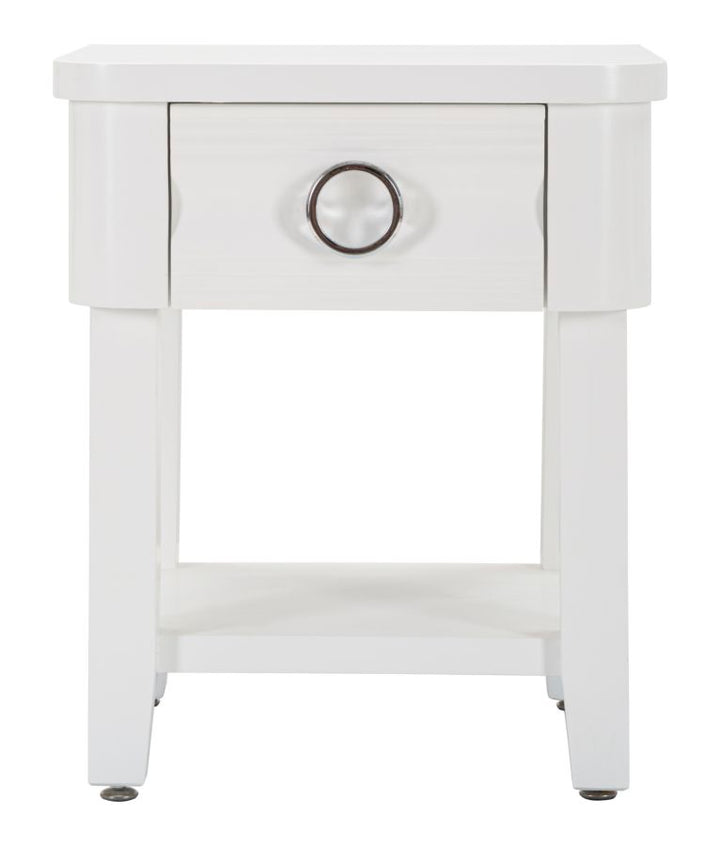 Weißer rechteckiger Nachttisch mit Schublade und Regal