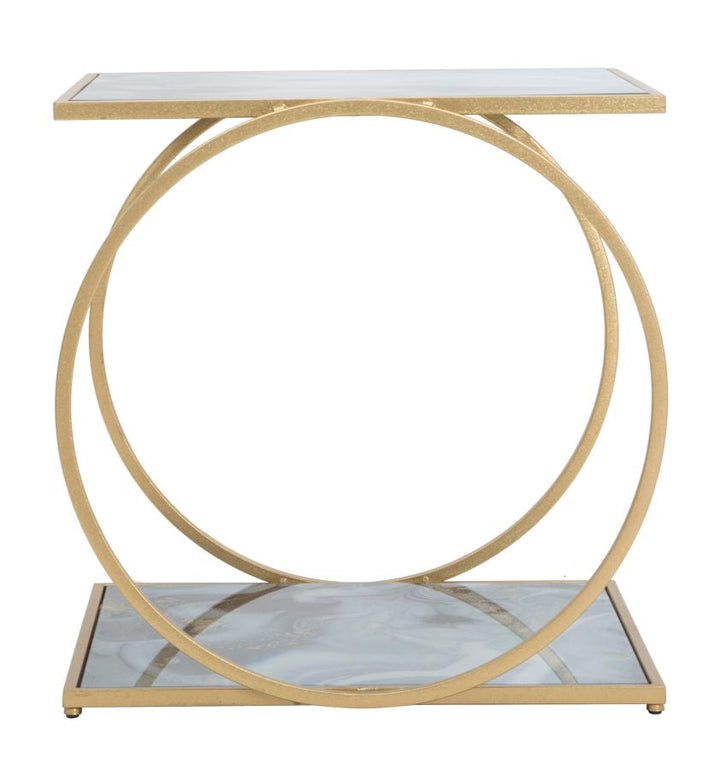 Kleiner quadratischer Tisch aus goldenem Metall mit grauer Marmorplatte