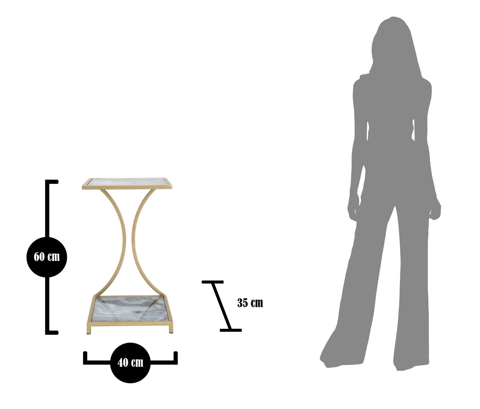 Kleiner quadratischer Tisch aus goldenem Metall mit grauer Marmorplatte