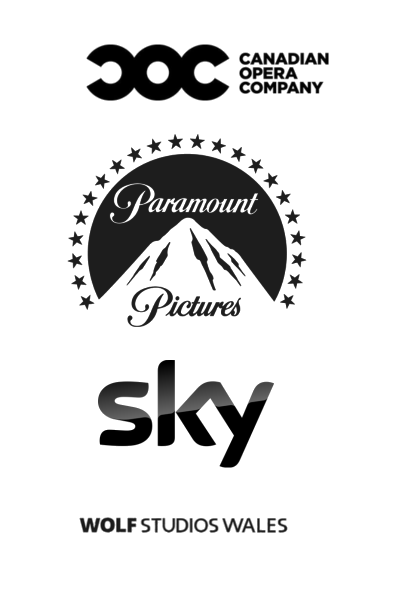 Film- und Theaterproduktionen, mit aktuellen Kooperationen wie: Barbarians Staffel 1, Harlots Staffel 3, Gemini Man, The Alienist Staffel 2, The Great, Enola Holmes, die Serie Bridgerton und House of the Dragon.