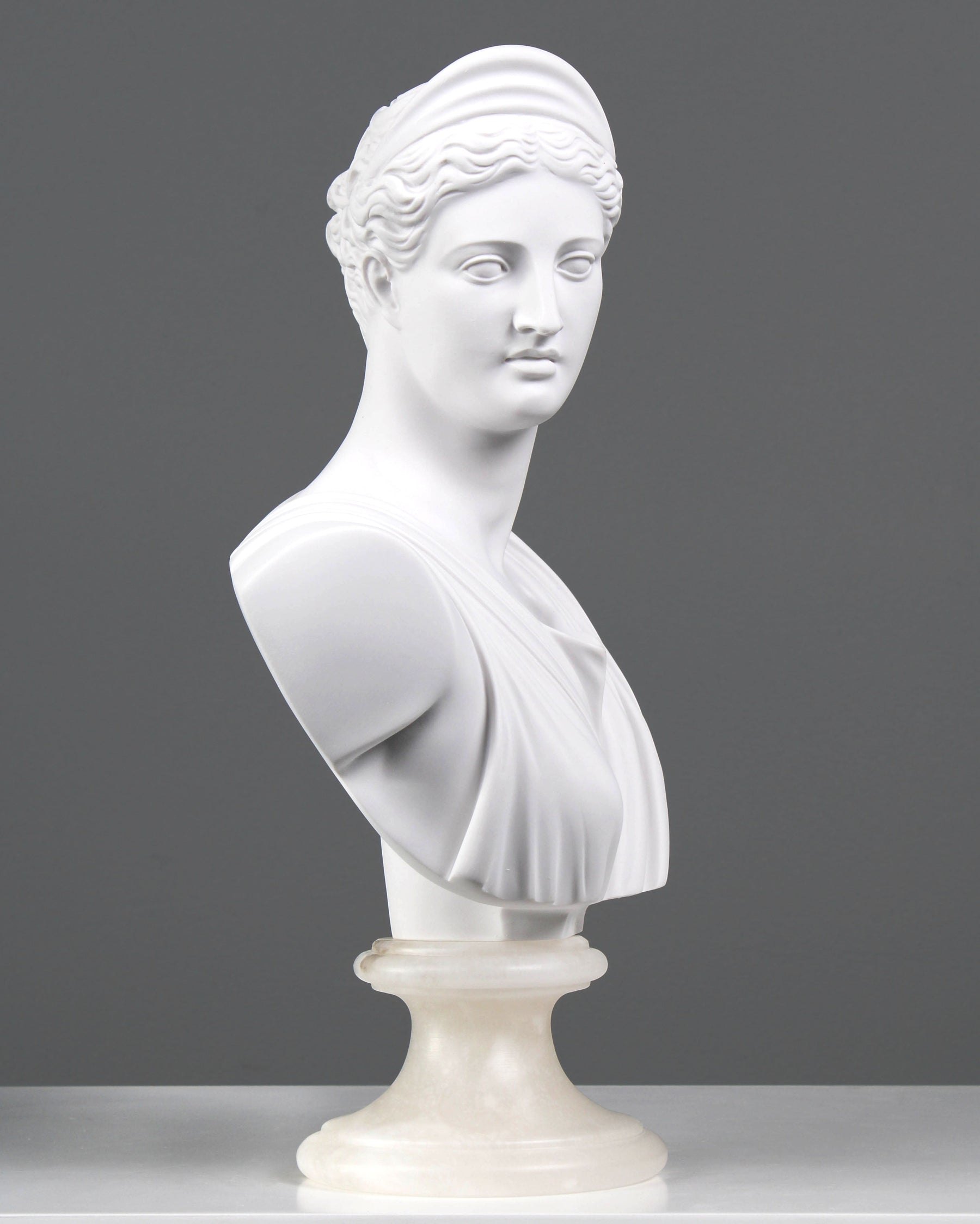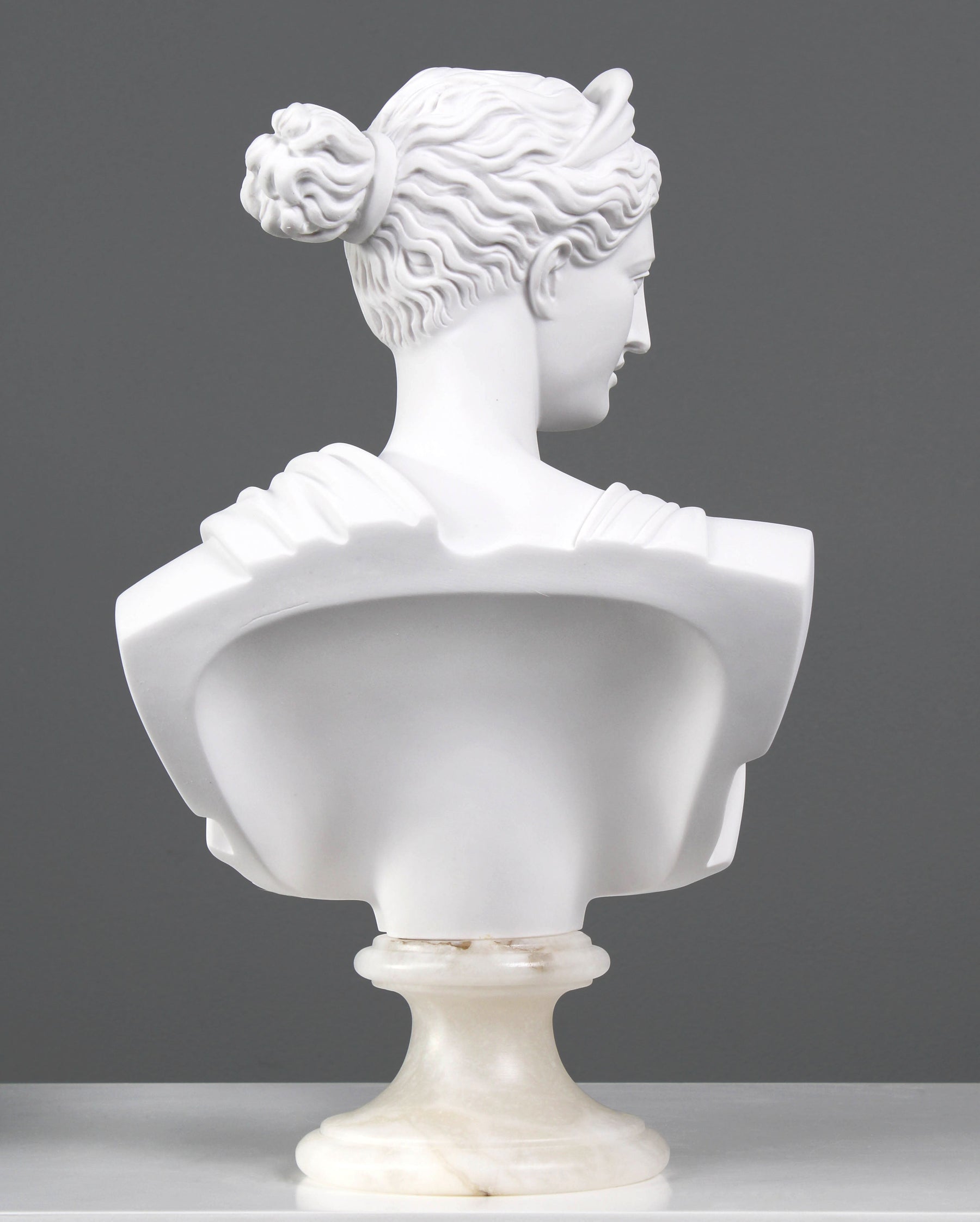 • Diana Büste (Versailles),"Büste der Göttin Diana, inspiriert von der Statue von Versailles. Römische Kopie eines griechischen Originals, heute im Louvre in Paris ausgestellt."