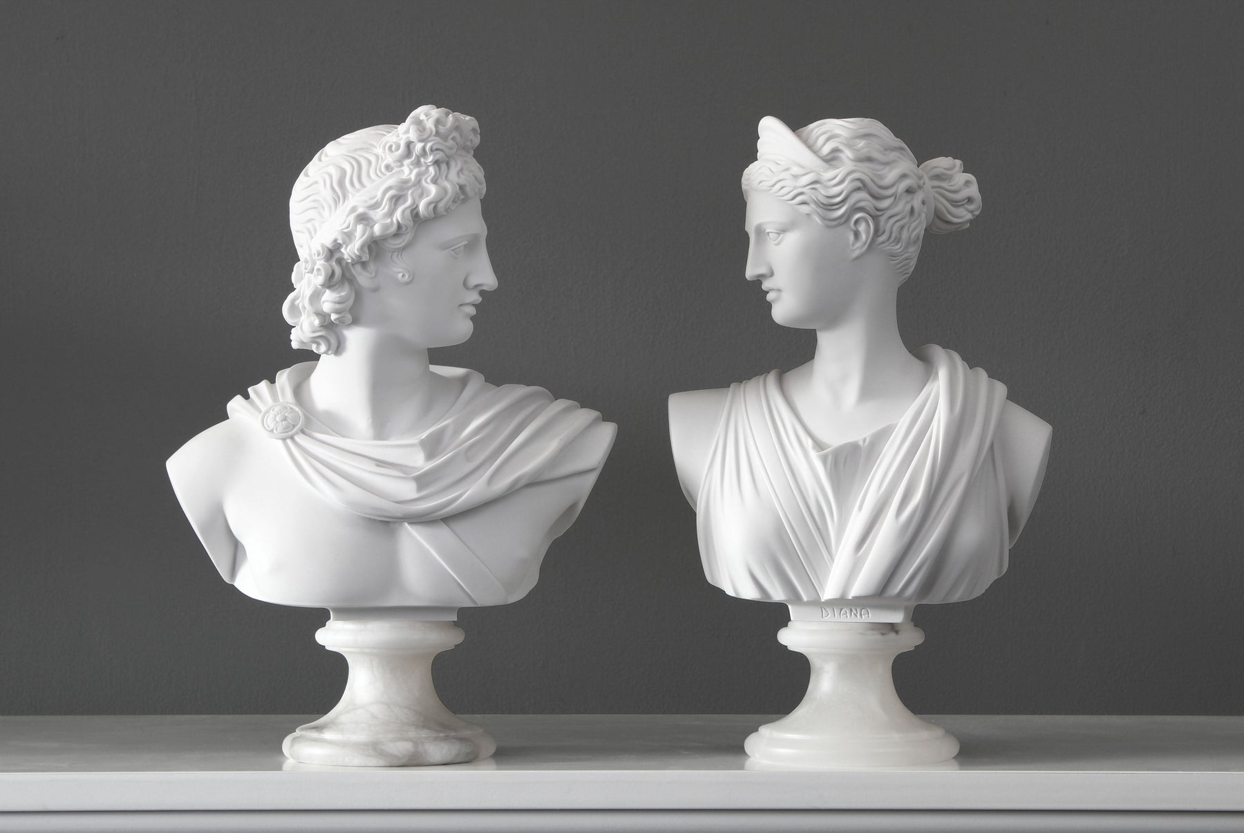 Unsere Skulpturen aus gepresstem Marmor bestehen aus einer Mischung aus weißem Carrara-Marmorstaub und hochwertigem Kunstharz als Bindemittel. Diese einzigartige Kombination ermöglicht eine außergewöhnlich feine Detailgenauigkeit bei jeder Skulptur. Jede einzelne wird sorgfältig von Hand nachbearbeitet, um eine feinmatte Oberfläche zu erzielen, die an die Textur von Biskuitporzellan erinnert.
