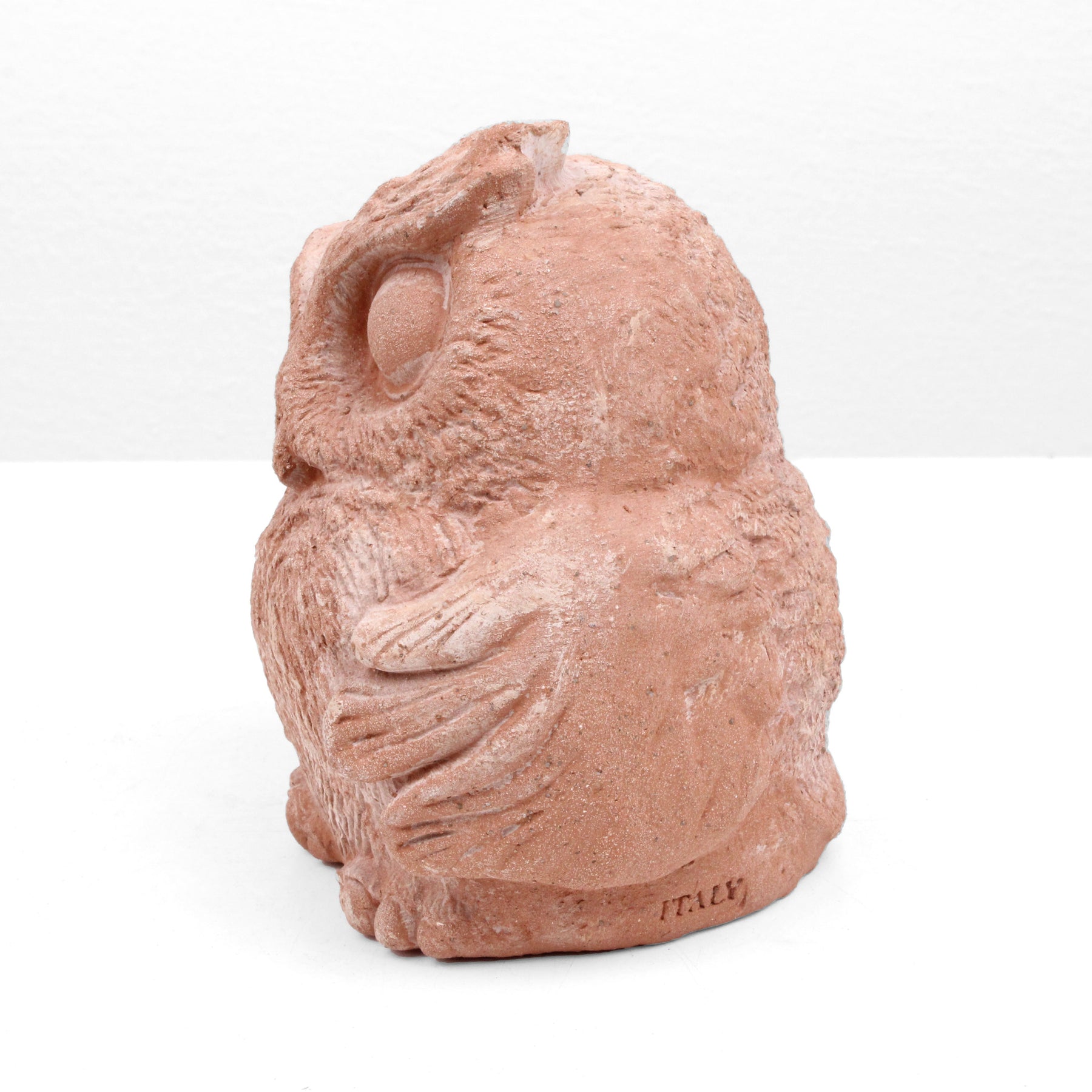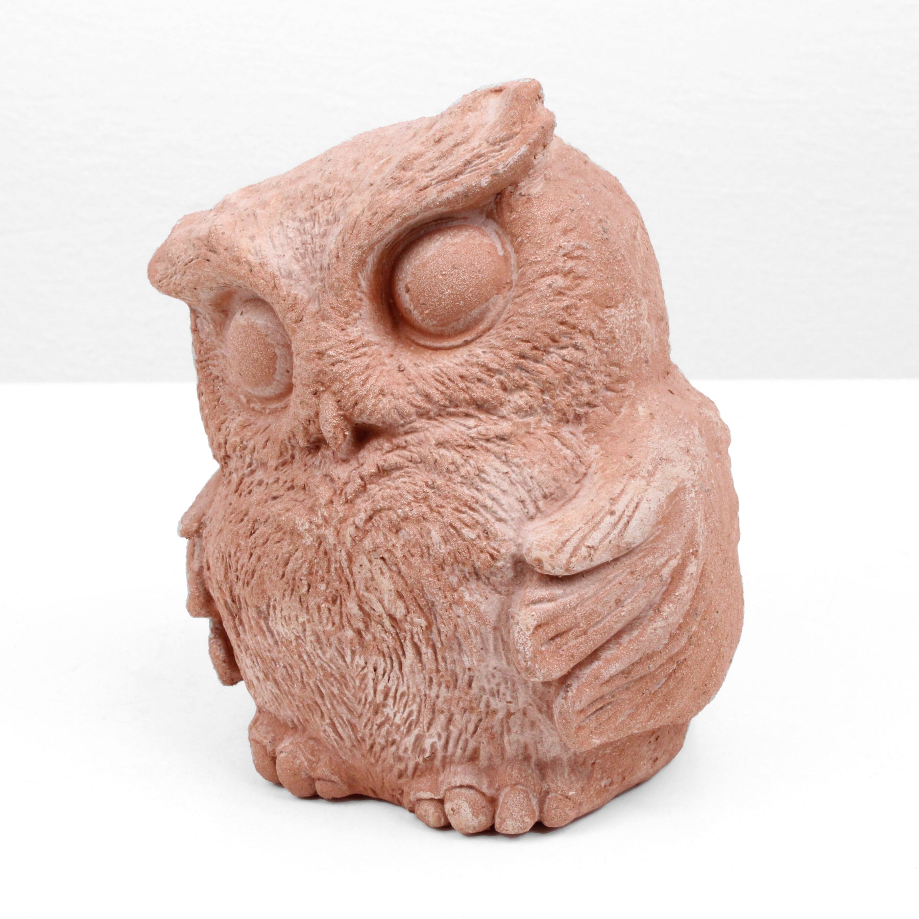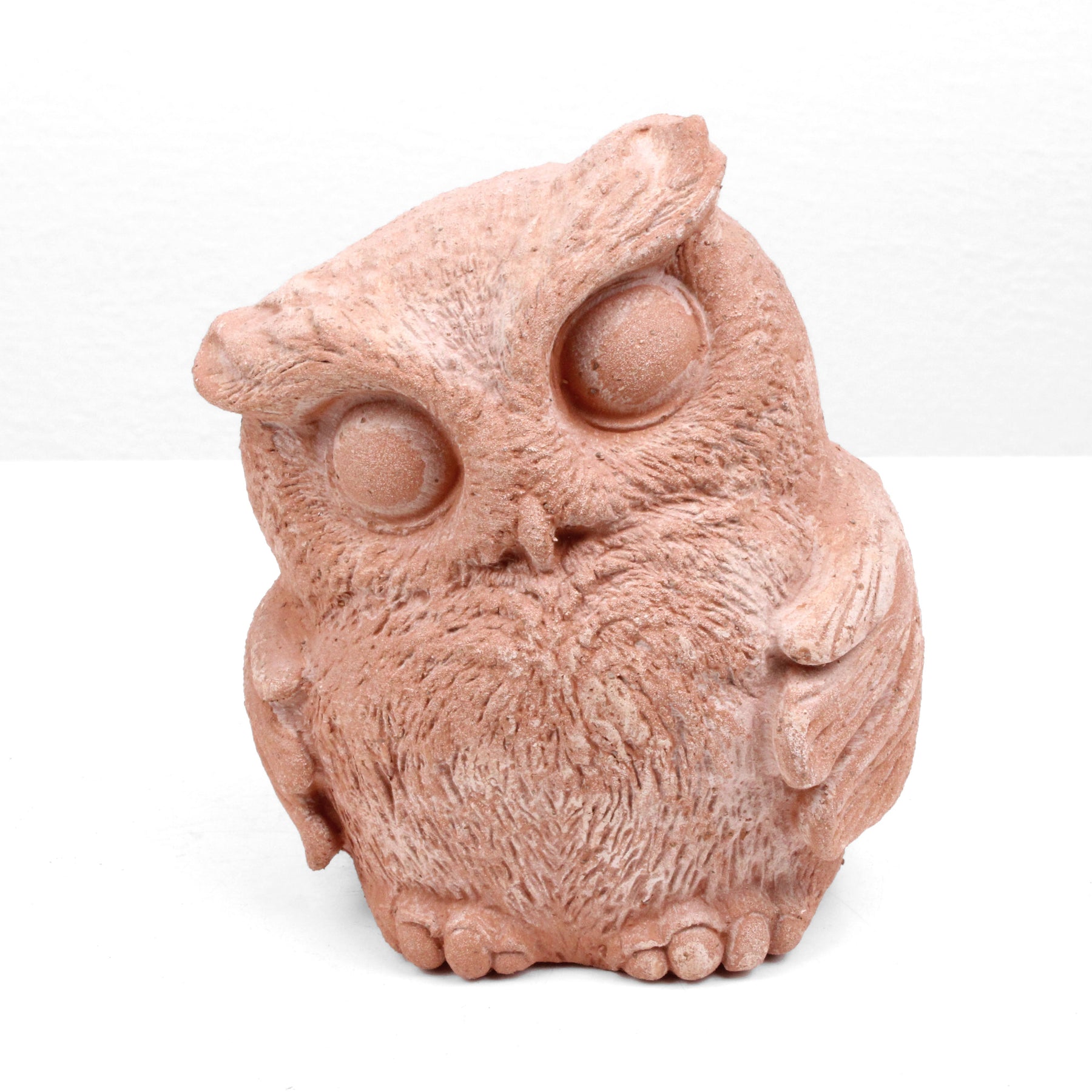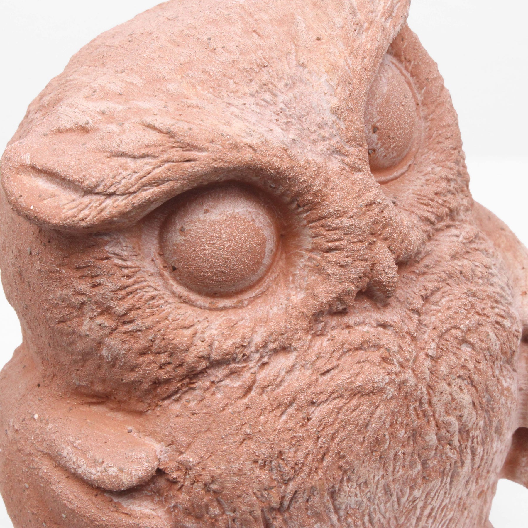Diese Terrakotta-Eule ist eine Keramikfigur mit fantastischen Details, bemalt mit natürlicher, umweltfreundlicher Farbe auf Wasserbasis. Sie ist ein wunderschönes, hochwertiges Kunstwerk, das sich sowohl für die Innen- als auch für die Außendekoration eignet.