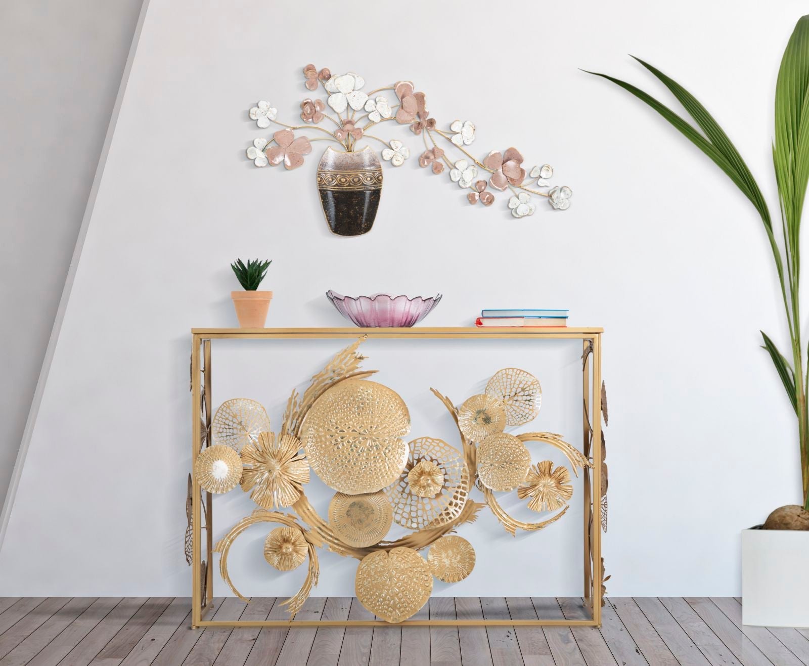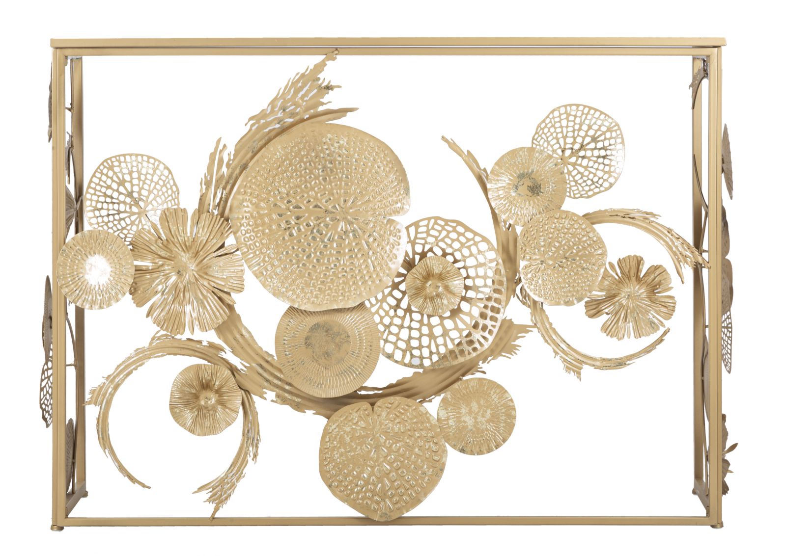 Geometrischer Konsolentisch aus Goldmetall und Glas