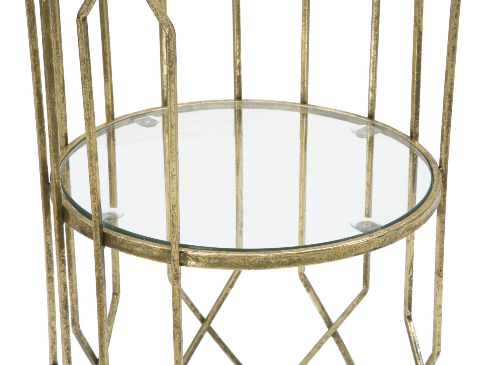Metall und Glas Gold Geometrischer kleiner Tisch mit Regal
