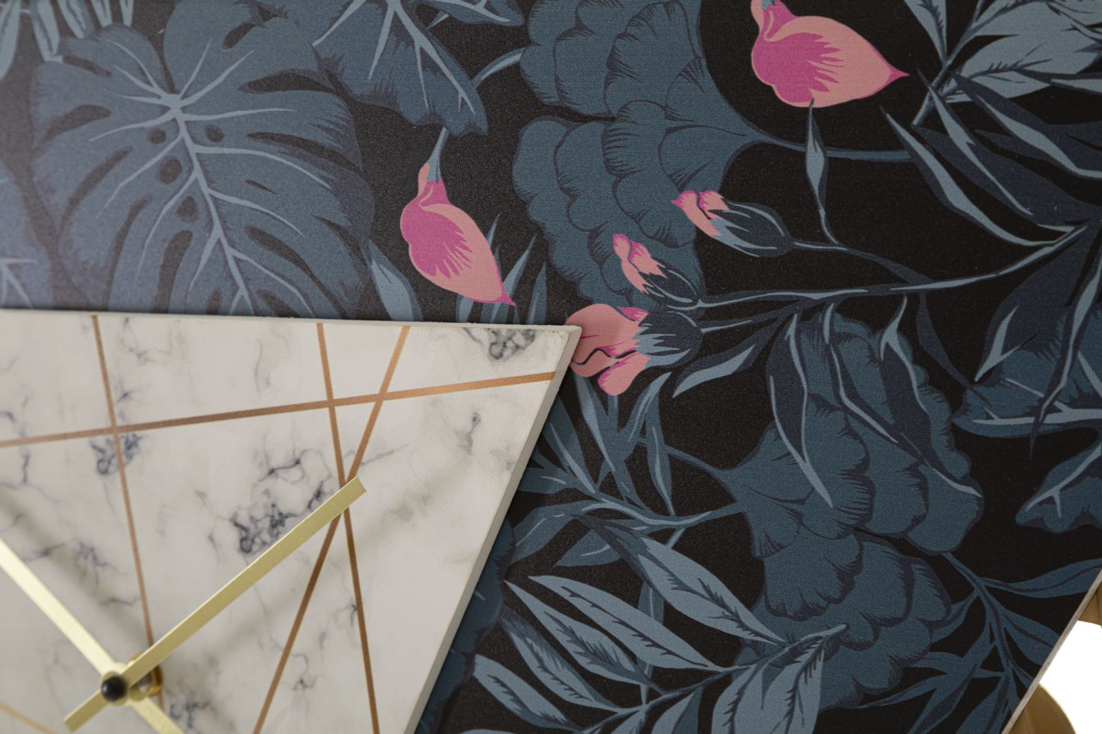 Moderne Wanduhr aus Metall in Form eines Dreiecks
