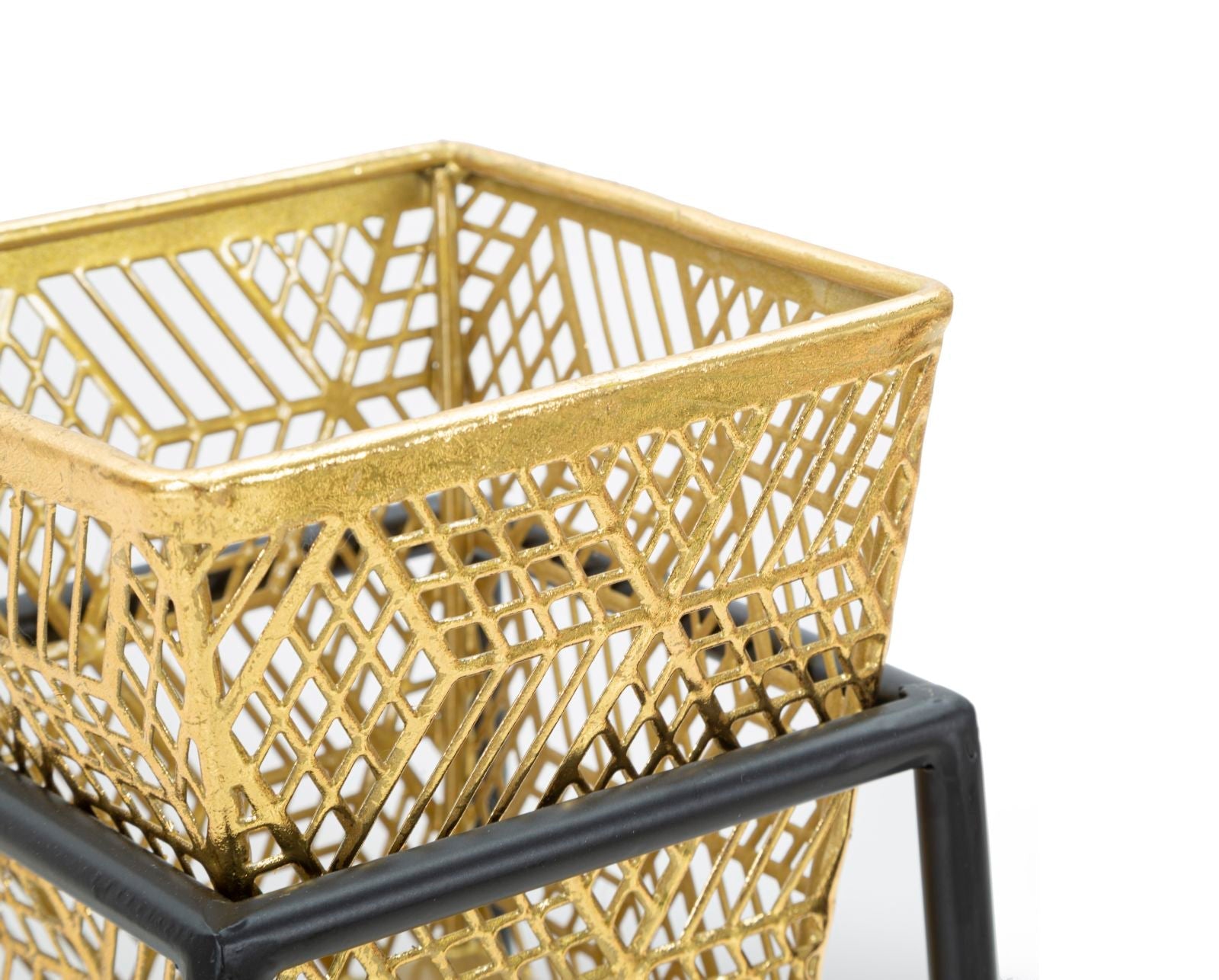 Rechteckige goldene Metallvase mit schwarzen Beinen (Paar)