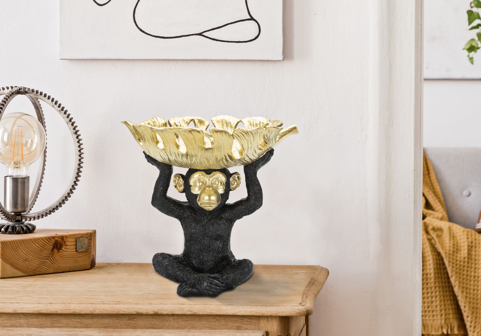 Schwarz & Gold Affe Statue (Moderne Dekoration - Lagerung)
