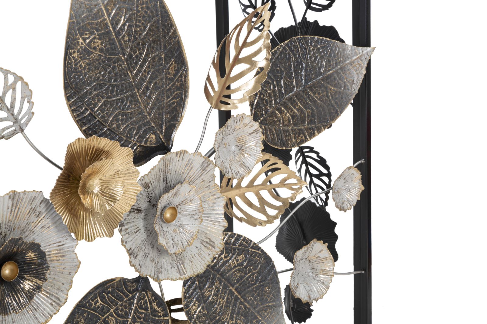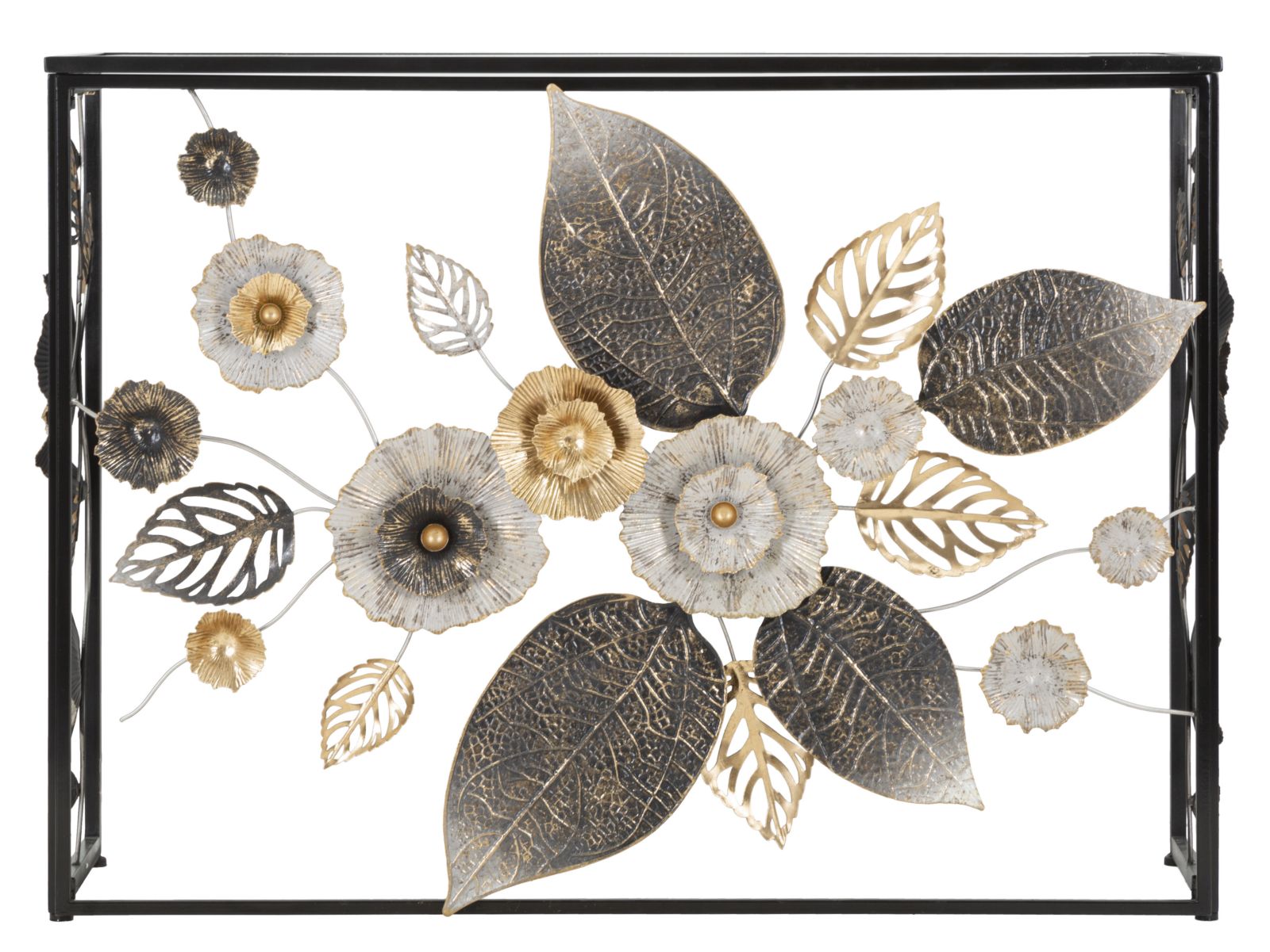 Schwarzer Konsolentisch aus Metall und Glas mit Blumen- und Blattmotiv