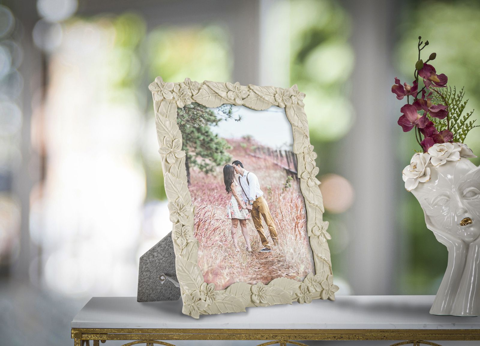 Weißer Blumen- und Blattmuster-Bilderrahmen